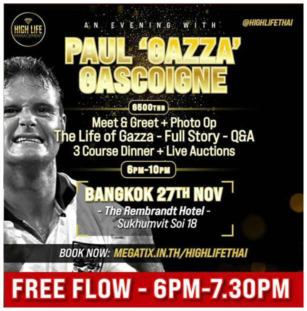 Paul Gazza Gascoigne is coming to Thailand! One of the Englands greatest